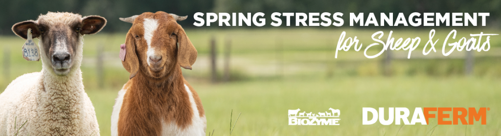 Be proactive in your spring stress management for sheep and goats with quality nutrition from DuraFerm, powered by AO-Biotics Amaferm. DuraFerm products are available through the extensive BioZyme dealer network. Locate a dealer near you today.